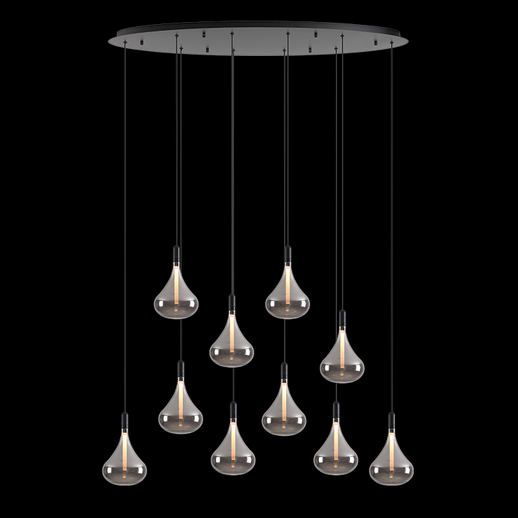 K-LED-CC4-10/SM – 230v 25W LED Cape Grape Smoke Glass Pendants on Oval Plate